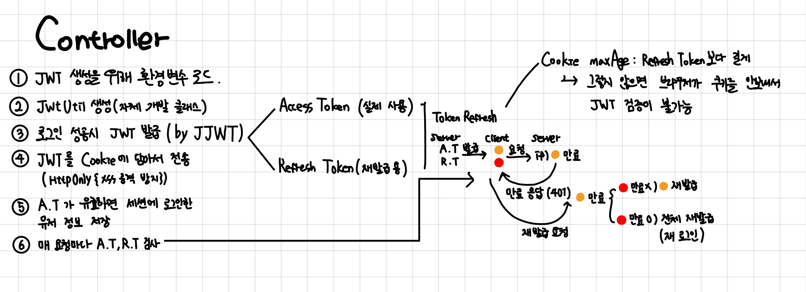 따라서 쿠키의 유효 기간은 JWT보다 길게 설정해야, 서버가 JWT 만료 여부를 정상적으로 판단할 수 있다.