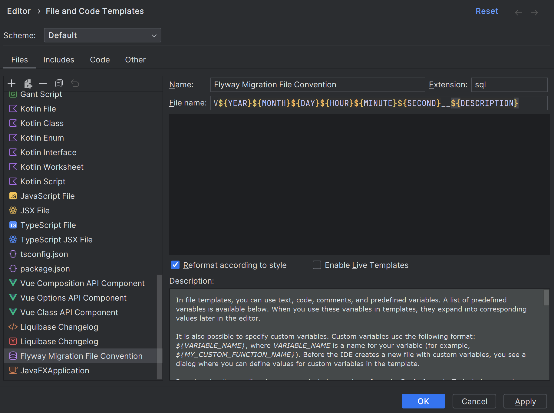 이제 resources/db/migration 하위에 sql 파일을 생성할 때마다 해당 템플릿을 사용해서 행복 개발을 할 수 있게 됐다.