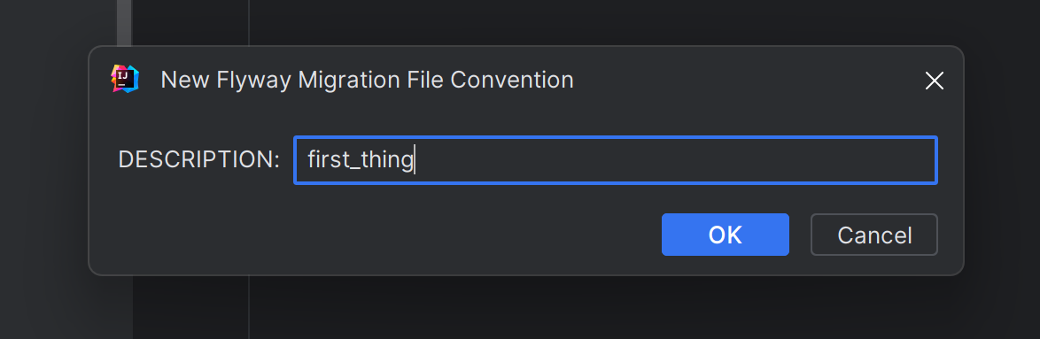 - db/migration 폴더 우클릭 → New → Flyway Migration 클릭